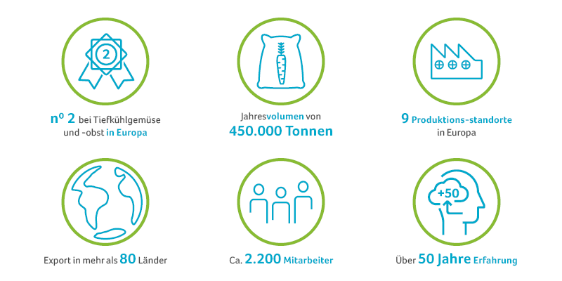Greenyard Frozen ist ein weltweiter Marktführer im Bereich Tiefkühlprodukte. Wir verarbeiten frisch geerntetes Gemüse und Obst in Lebensmittel, die sich einfach lagern, konservieren und konsumieren lassen. Unsere Produkte erfüllen die Bedürfnisse moderner Verbraucher, die gesunde und schmackhafte Lebensmittel mit minimaler Zubereitungszeit genießen möchten. Wir bieten unseren Kunden, worunter Einzelhändler, Food-Service-Unternehmen und Lebensmittelindustrie im Allgemeinen, eine breite Palette an innovativen und hochwertigen Produkten, einen hervorragenden Service und eine fortschrittliche Logistik.